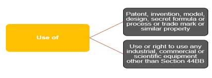 - Consideration for the use or right to use any industrial, commercial or scientific equipment but not including the amounts referred to in section 44BB;
