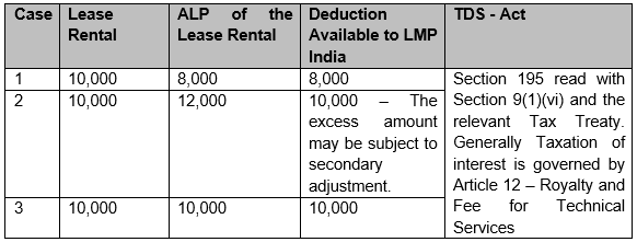 The deduction of lease rentals in the hands of LMP India would be based on the arm’s length price of the lease rentals.
